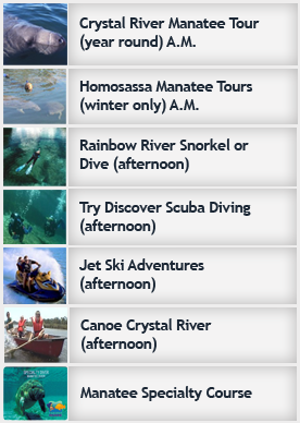 Crystal River Manatee tour offers year round snorkel encounters with our gentile giants and if there are divers in the family there is something for everyone on this trip.
